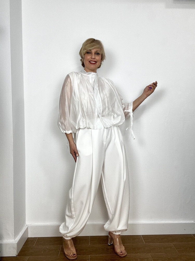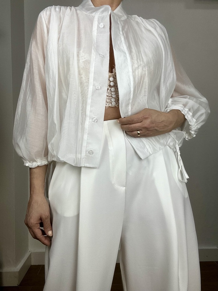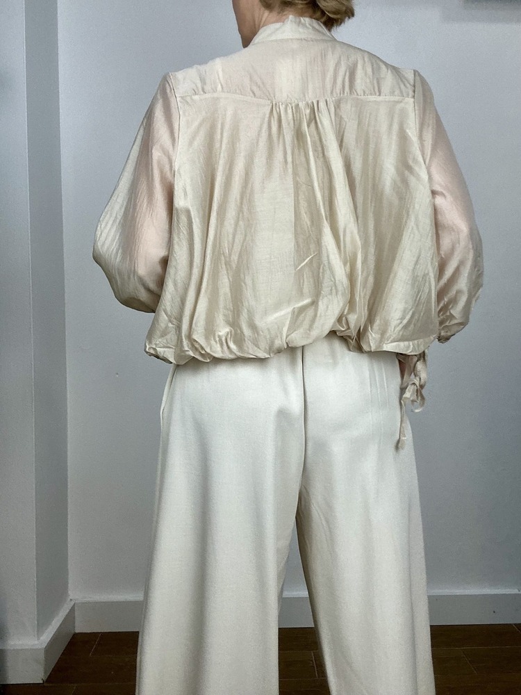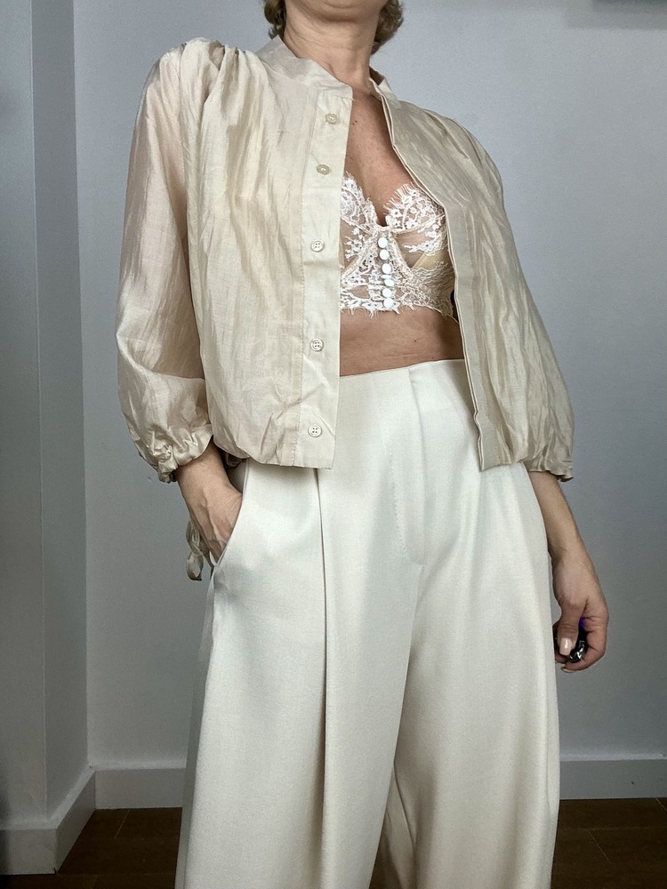 Tejido sedoso. Cierre por ajuste en puños. Doble tela en la confeción.