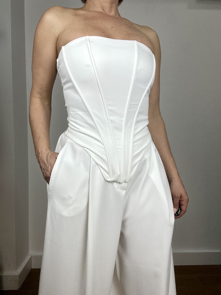 Diseñado para entallar la cintura y resaltar la figura mediante corte estructurado. Palabra de honor y varillado.